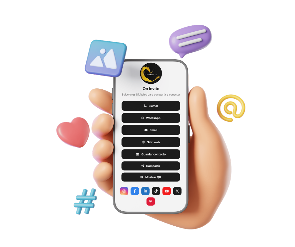 Comparte tu contacto, redes sociales, WhatsApp y sitio web